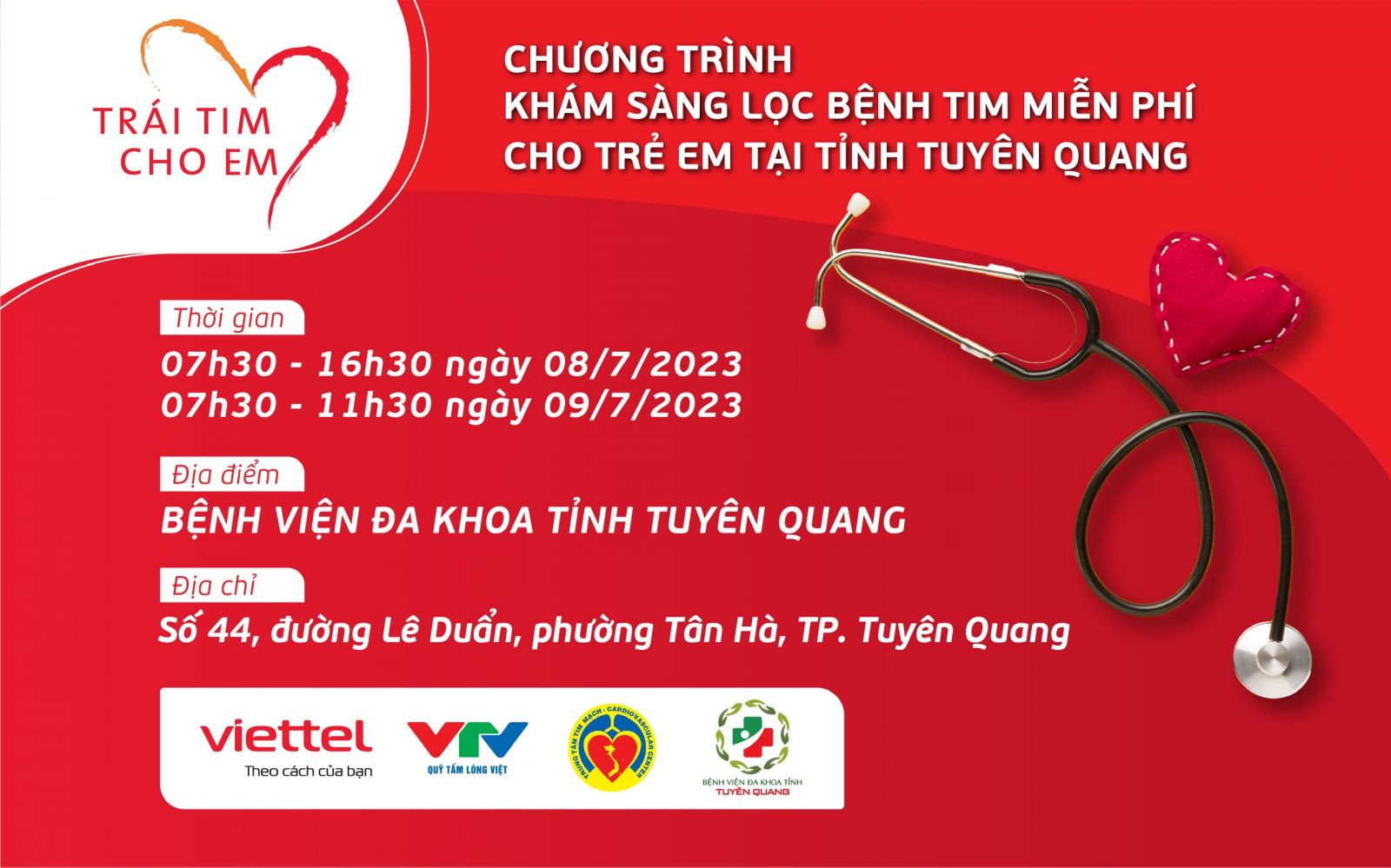 Đây là lần thứ 3 chương trình “Trái tim cho em” đến với trẻ em tỉnh Tuyên Quang. Chương trình lần này được Viettel Tuyên Quang, Quỹ Tấm lòng Việt thực hiện với sự đồng hành của các bác sỹ bệnh viện E Trung Ương, bệnh viện Đa khoa tỉnh Tuyên Quang. Sau khi khám sàng lọc, các trường hợp có chỉ định can thiệp/phẫu thuật và hoàn cảnh khó khăn sẽ được chương trình Trái tim cho em hướng dẫn làm hồ sơ để được điều trị hoàn toàn miễn phí. Trước đó, trong tháng 5/2023, chương trình đã tổ chức khám cho hơn 800 em nhỏ tại Bình Thuận.