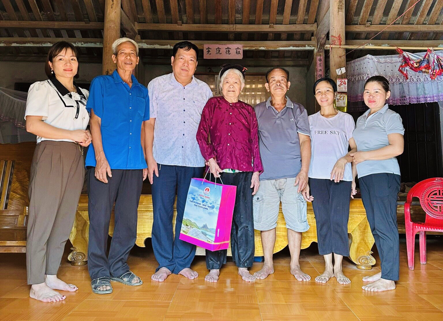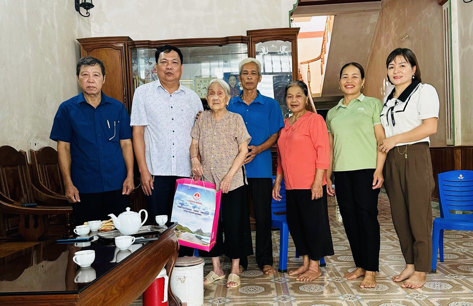 Đó là các cụ: Hoàng Thị Lai, sinh năm 1936, thôn Lăng Luông, xã Tân Thịnh, huyện Chiêm Hóa; cụ Phùng Thị Tồn, sinh năm 1938, thôn Soi Đúng, xã Vinh Quang; cụ Phùng Thị Thìn, sinh năm 1928, thôn Tông Trang xã Vinh Quang, huyện Chiêm Hóa. Mỗi suất quà trị giá 1.300.000 đồng (trong đó: tiền mặt là 1.000.000 đồng và 01suất quà trị giá: 300.000 nghìn đồng).