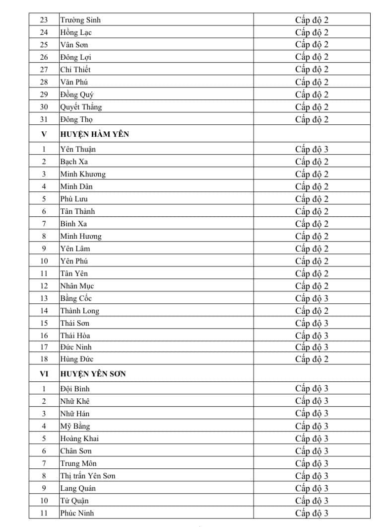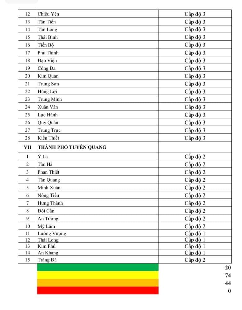 Phân loại cấp độ dịch Covid-19 trên địa bàn tỉnh Tuyên Quang