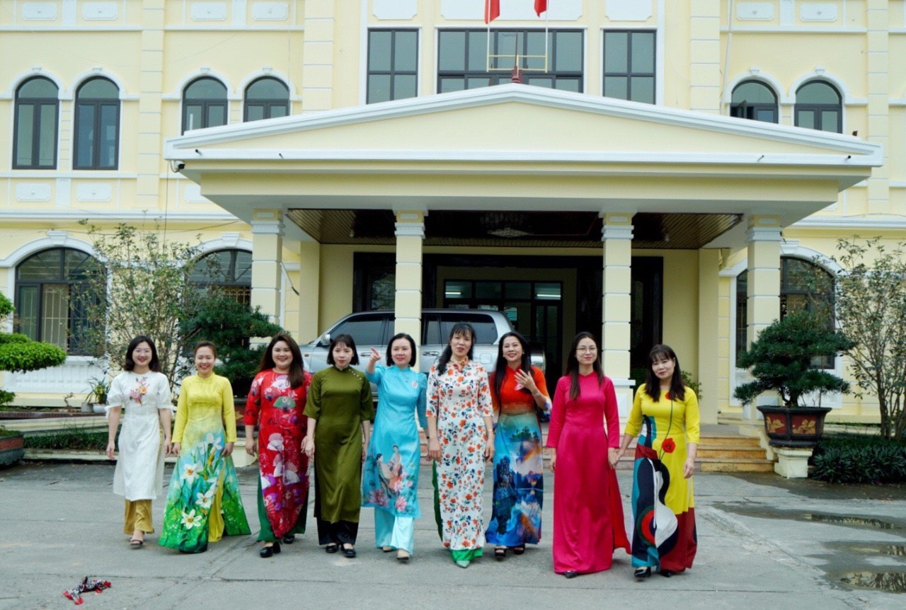 Nữ đoàn viên Công đoàn cơ sở Văn Phòng Sở Y tế trong ngày đầu hưởng ứng Tuần lễ áo dài 2023.