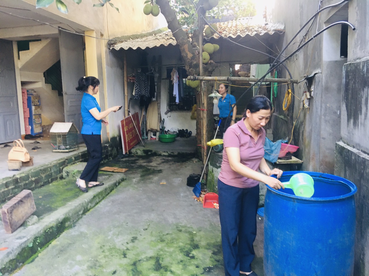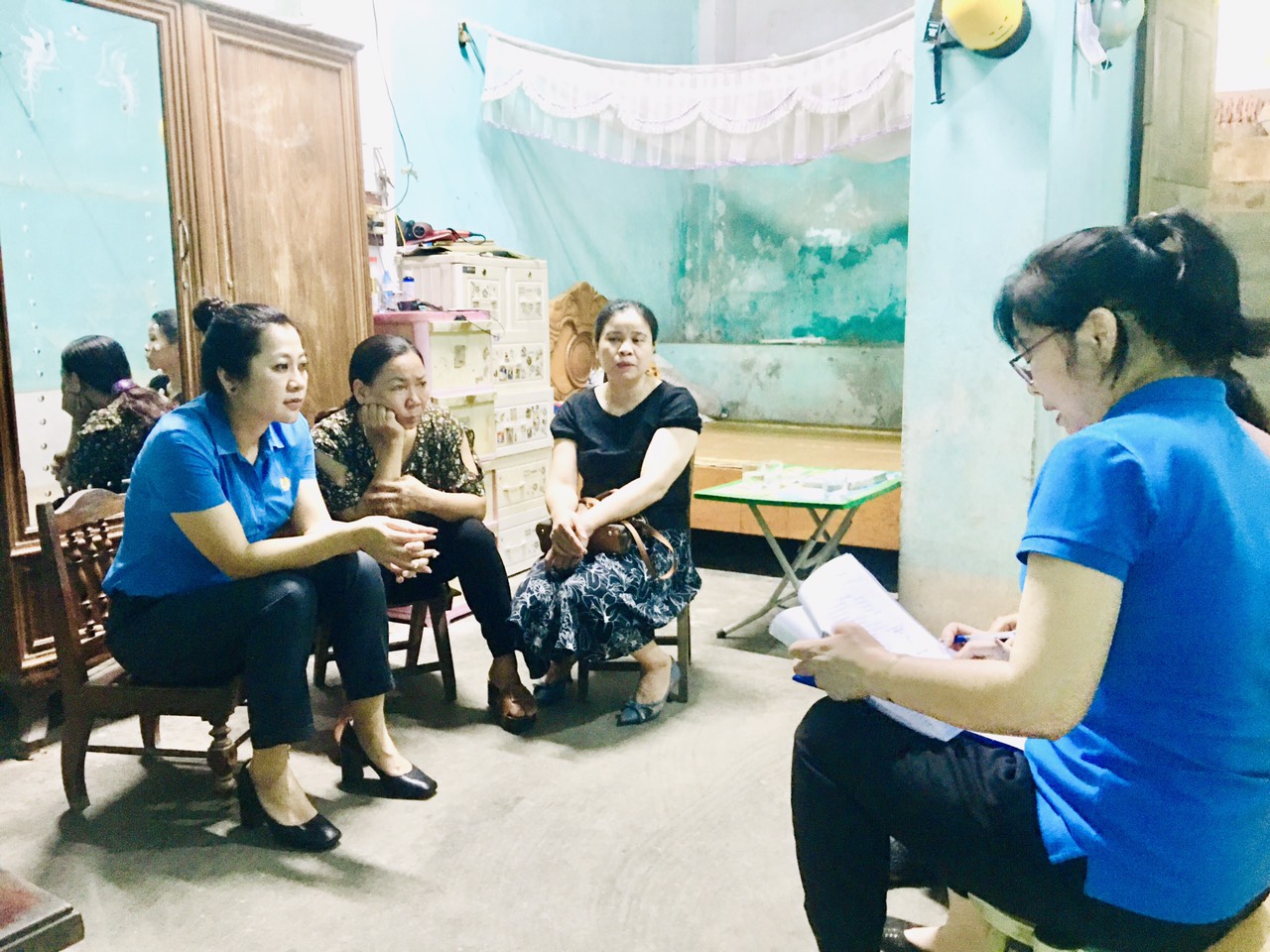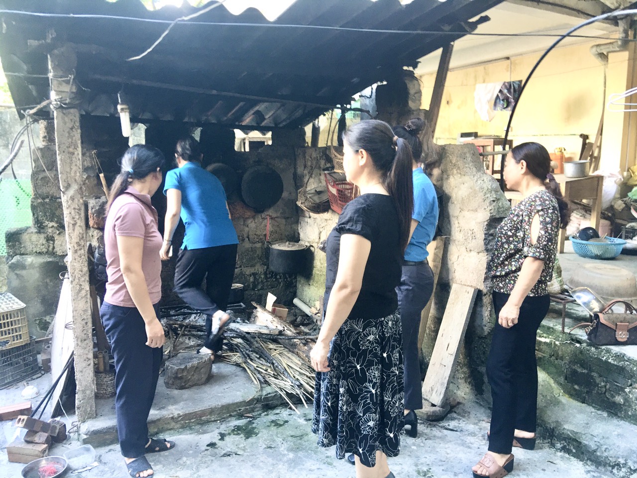 Các đồng chí trong đoàn đang khảo sát nhà đồng chí Phạm Thị Nguyệt.