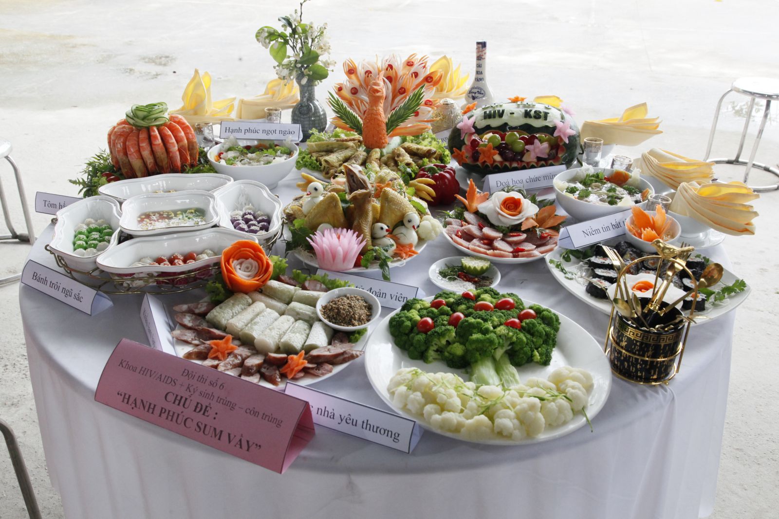 Hội thi gồm có 08 đội dự thi đại diện cho các khoa, phòng của trung tâm. Với chủ đề tự chọn, mỗi đội sẽ tự chọn các món ăn chính để tham gia dự thi. Dưới bàn tay khéo léo của các chị em, các món ăn vừa mang tính truyền thống, vừa mang tính hiện đại đảm bảo các tiêu chí: đa dạng về món ăn, đẹp về thẩm mỹ, ngon về chất lượng, đảm bảo dinh dưỡng và an toàn vệ sinh thực phẩm. Bên cạnh đó, các đội thi còn có phần thuyết trình về các món ăn vô cùng hấp dẫn và thuyết phục. Với sự nhanh nhẹn, khéo léo, trong thời gian ấn định, các đội đã hoàn thành các món ăn, đáp ứng đúng yêu cầu do Ban Tổ chức đưa ra.