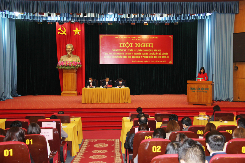 Sáng 21/1/2022, tại Trung tâm hội nghị tỉnh, Sở Y tế tổ chức Hội nghị tổng kết công tác y tế năm 2021, triển khai phương hướng nhiệm vụ năm 2022; trao tặng bằng khen của Chủ tịch Ủy ban nhân dân tỉnh cho các tập thể, cá nhân có thành tích xuất sắc trong thực hiện nhiệm vụ phòng, chống dịch Covid-19.