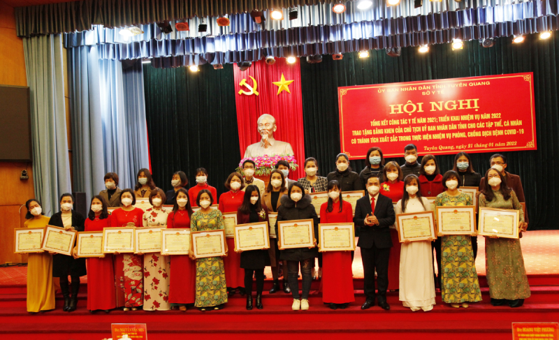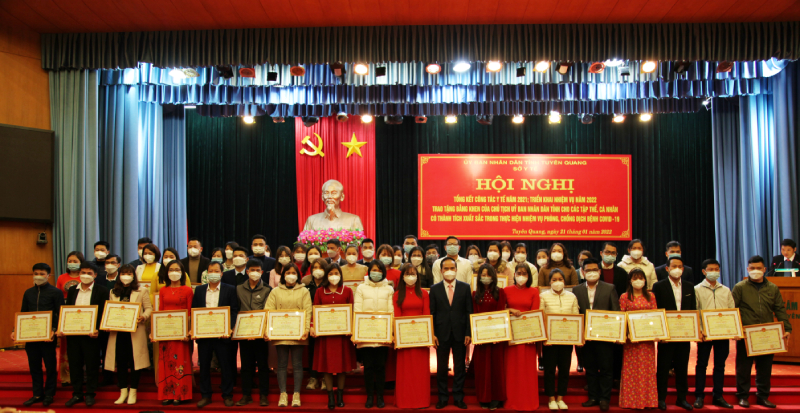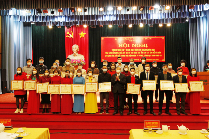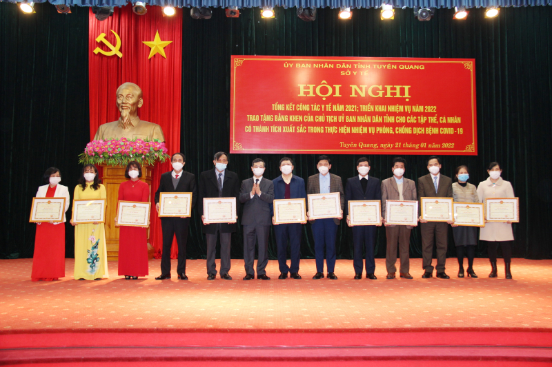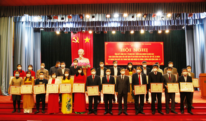 Dịp này Hội nghị đã trao Bằng khen của Chủ tịch Ủy ban nhân dân tỉnh cho 12 tập thể, 274 cá nhân đã có thành tích xuất sắc trong thực hiện nhiệm vụ phòng, chống dịch Covid-19 năm 2021.