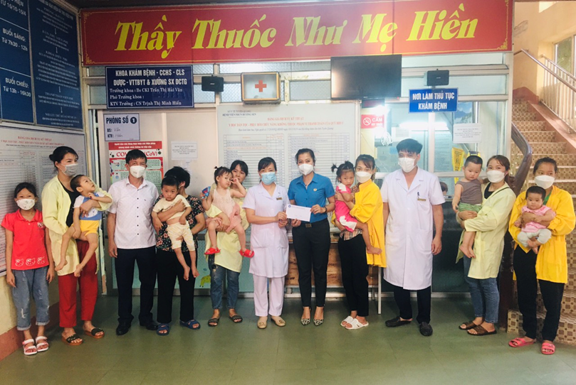 Cùng ngày Công đoàn ngành Y tế tỉnh tổ chức đã tặng quà, động viên các bệnh nhi đang điều trị tại Bệnh viện Phục hồi chức năng Hương Sen, những món quà niềm động viên lớn đối với bệnh nhi và người nhà, giúp trẻ có thêm niềm vui, phấn khởi trong ngày Tết thiếu nhi, từ đó mang lại hiệu quả điều trị tích cực.