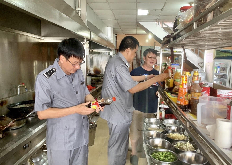 Chú thích ảnh: Kiểm tra các thực phẩm bao gói sẵn tại Nhà hàng Bến sông xưa được đều đạt tiêu chuẩn an toàn vệ sinh thực phẩm