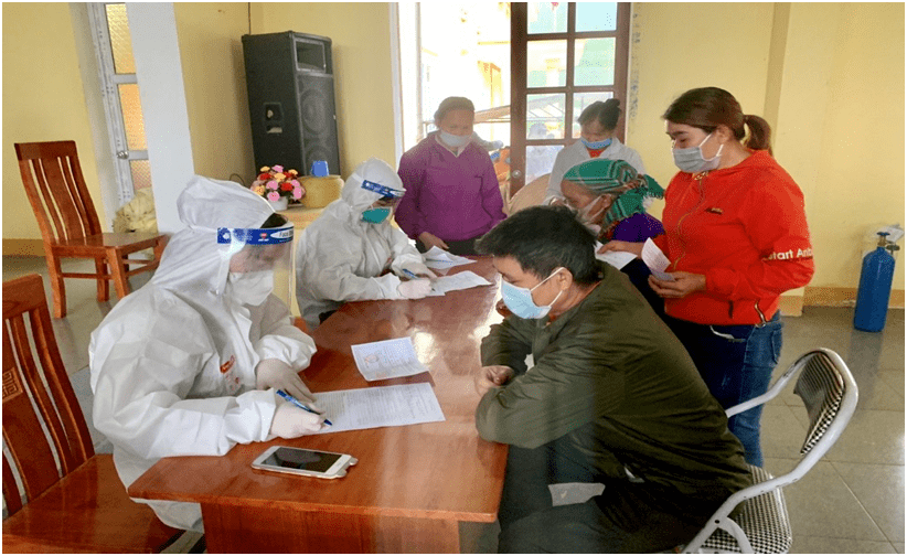 Đội tiêm lưu động tổ chức khám sàng lọc cho người dân xã Đồng Quý (Sơn Dương) Ảnh: Chính Anh