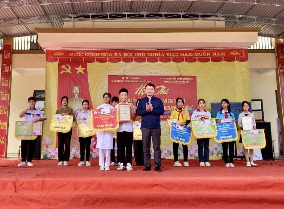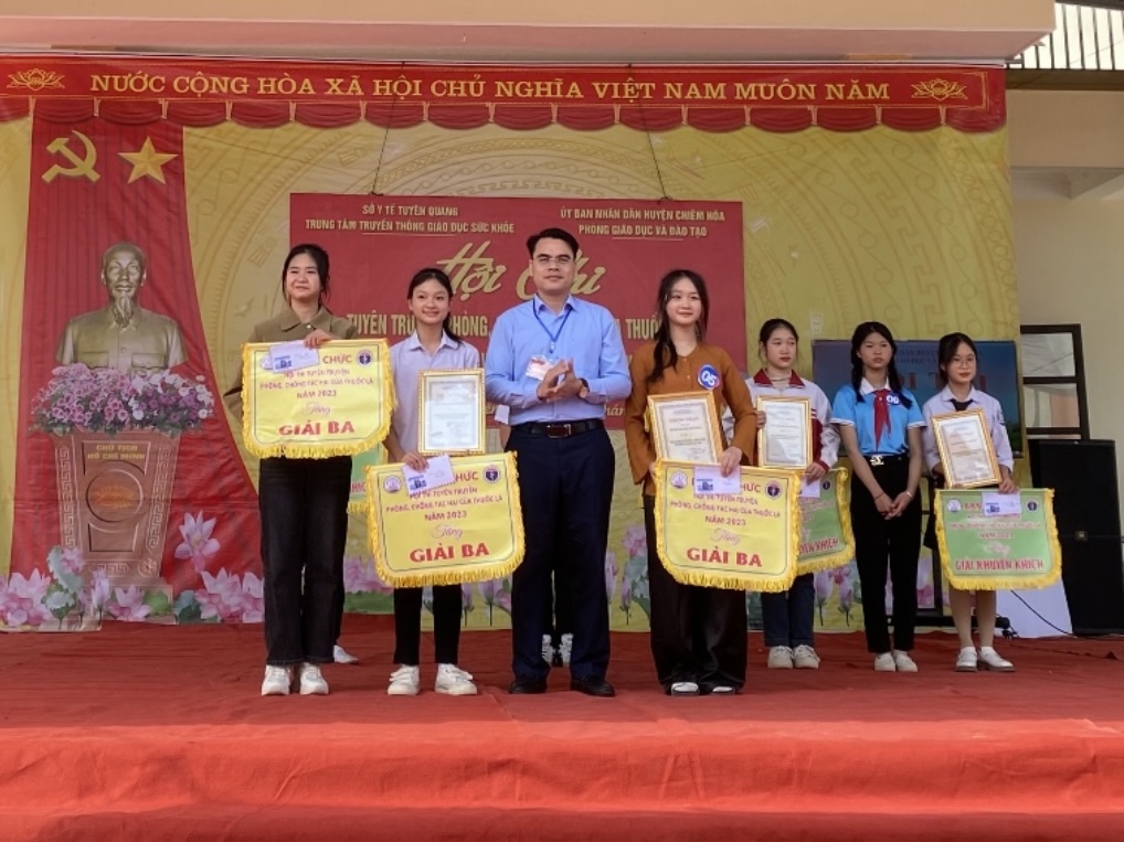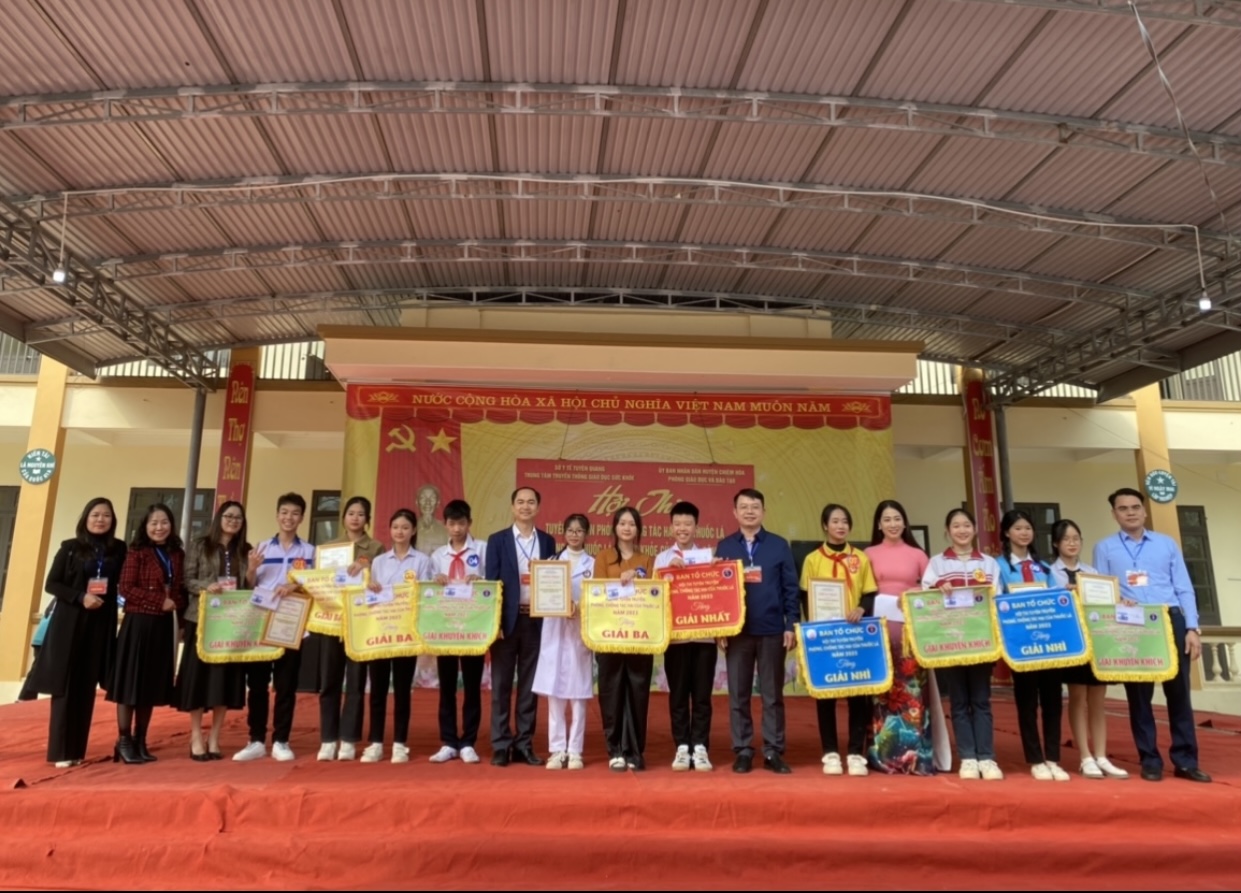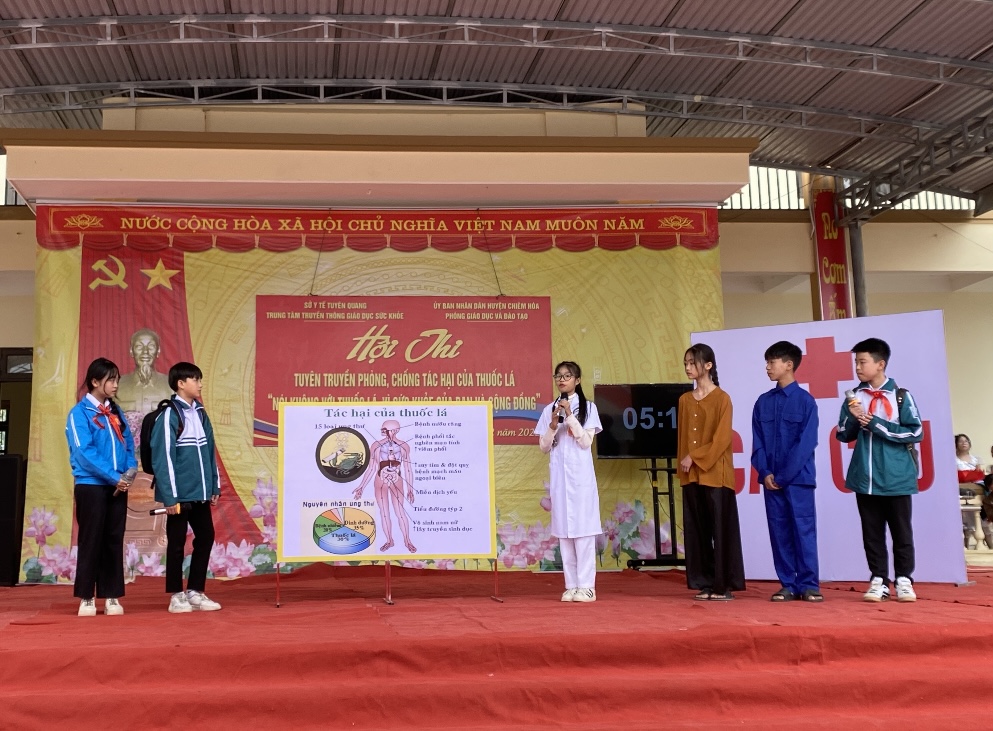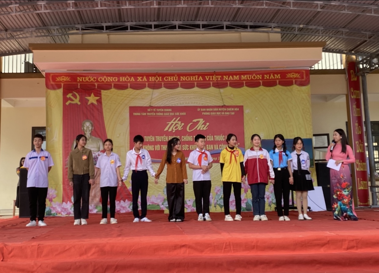 Ngày 30/12/2023, tại huyện Chiêm Hóa, Trung tâm Truyền thông giáo dục sức khỏe phối hợp với Phòng Giáo dục - Đào tạo huyện Chiêm Hóa tổ chức Hội thi tuyên truyền phòng chống tác hại thuốc lá “Nói không với thuốc lá, vì sức khỏe của bạn và cộng đồng”. Tham gia Hội thi có 10 đội đến từ các trường Trung học cơ sở trên địa bàn huyện, đó là: THCS Ngọc Hội, Vĩnh Lộc, Vinh Quang, Xuân Quang, Trung Hòa, Tân An, Tân Thịnh, Hòa An, Hòa Phú, Yên Nguyên.