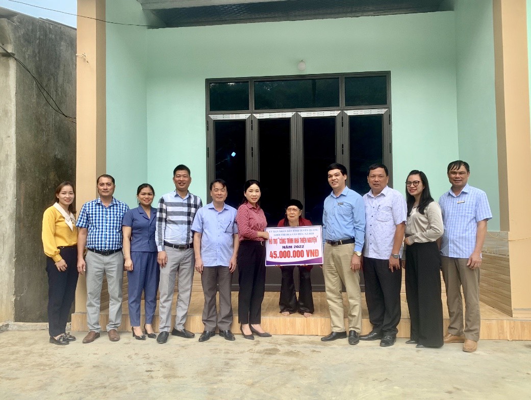 Thực hiện Kế hoạch số 06/KH-KVHXH ngày 04/11/2022 của Khối thi đua Văn hóa - Xã hội về việc tổ chức hoạt động thiện nguyện “Hỗ trợ kinh phí làm nhà ở mới đối với hộ gia đình có hoàn cảnh khó khăn”. Ngày 11/11/2022, Lãnh đạo đại diện các cơ quan Khối thi đua Văn hóa - Xã hội đã đến thăm và trao kinh phí hỗ trợ làm nhà ở mới cho hộ gia đình bà Đặng Thị Hồ, sinh năm 1932, Tổ 5, Phường Đội Cấn, Thành phố Tuyên Tuyên Quang, trị giá 45.000.000 đồng.
