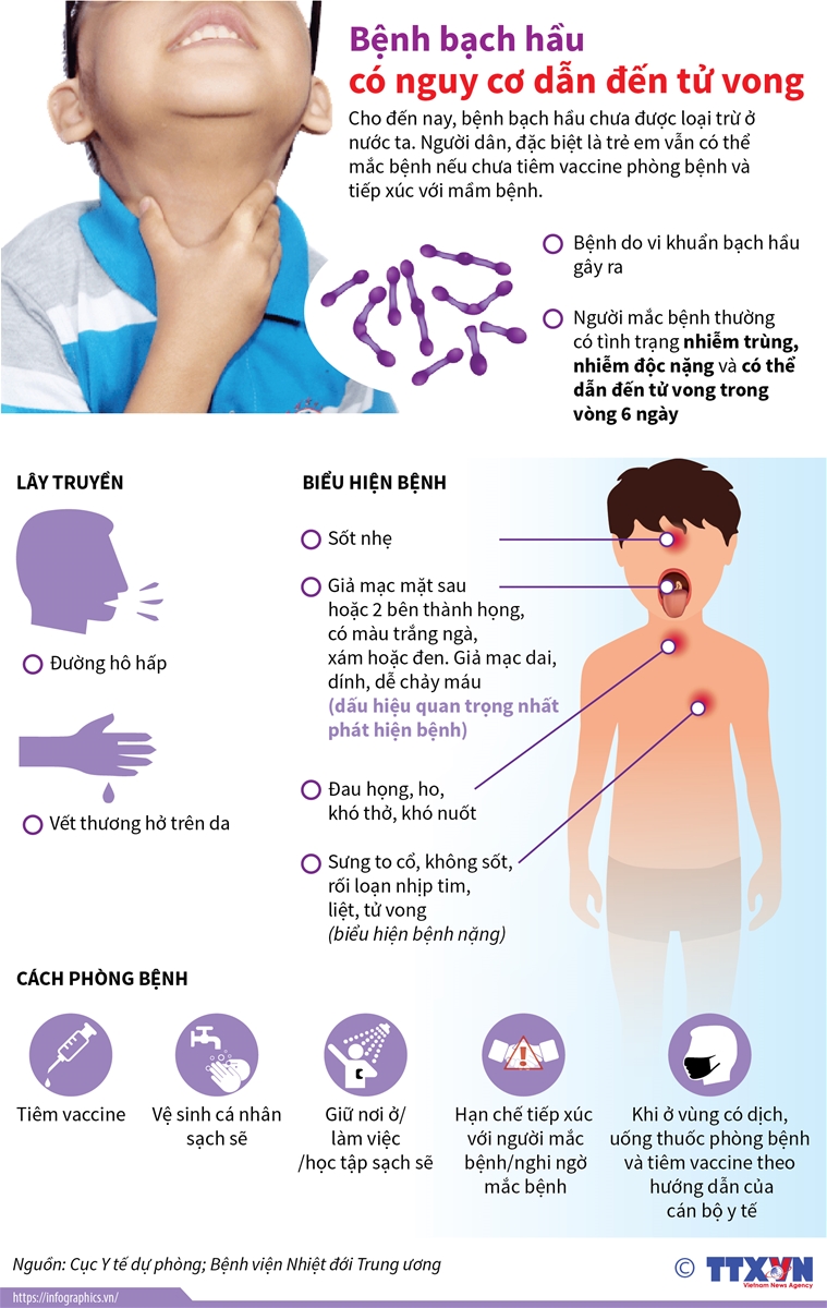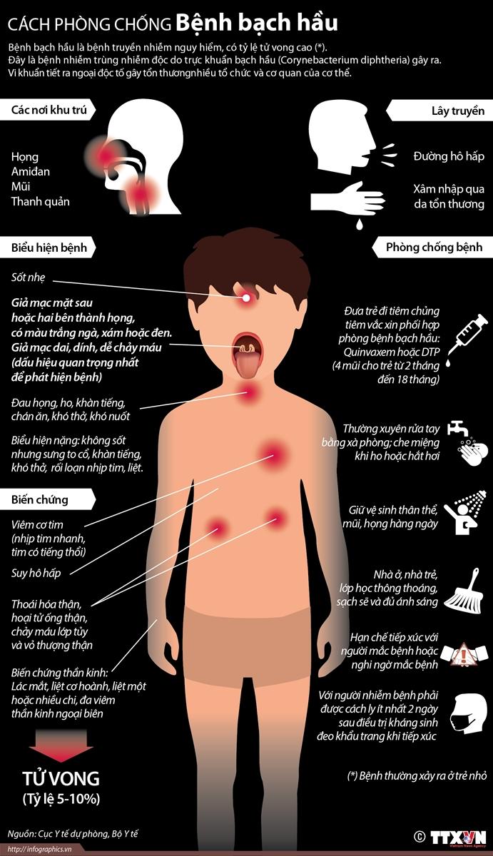 Cho đến nay, bệnh bạch hầu chưa được loại trừ ở nước ta. Tiêm vắc-xin ĐỦ MŨI và ĐÚNG LỊCH vẫn là BIỆN PHÁP TỐT NHẤT để phòng bệnh bạch hầu.