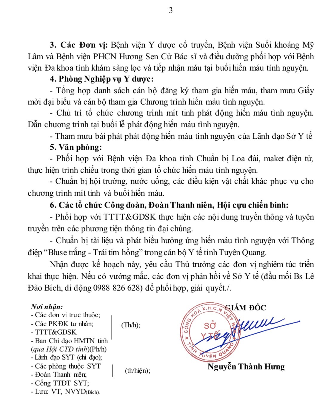Kế hoạch tổ chức hiến máu tình nguyện trong ngành Y tế tỉnh Tuyên Quang năm 2023