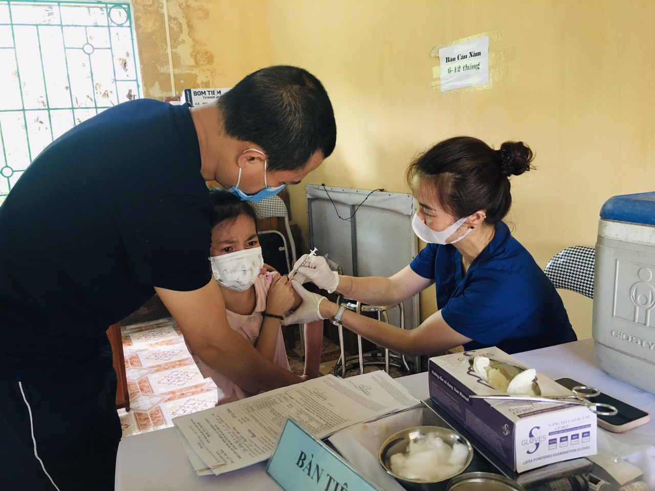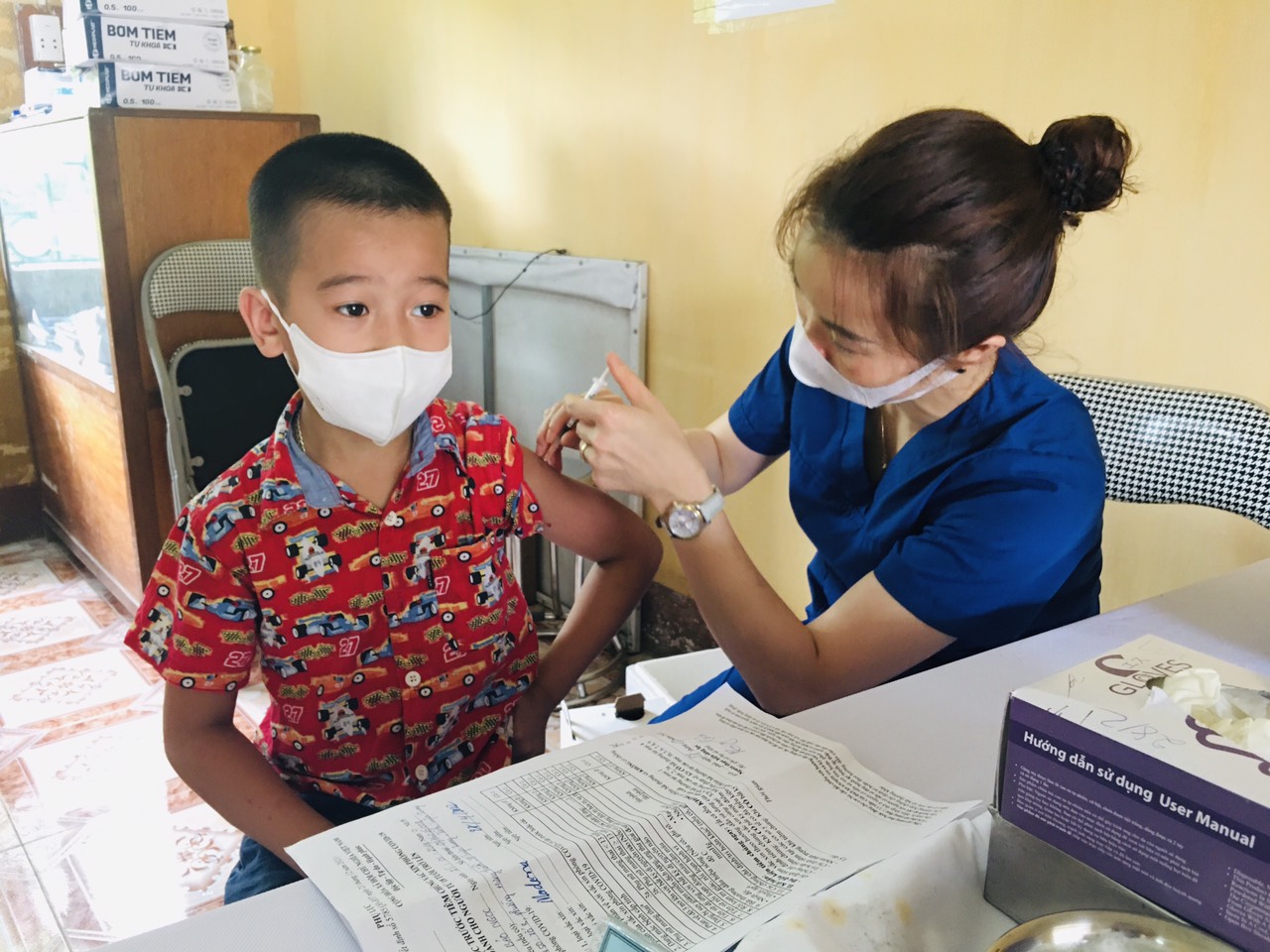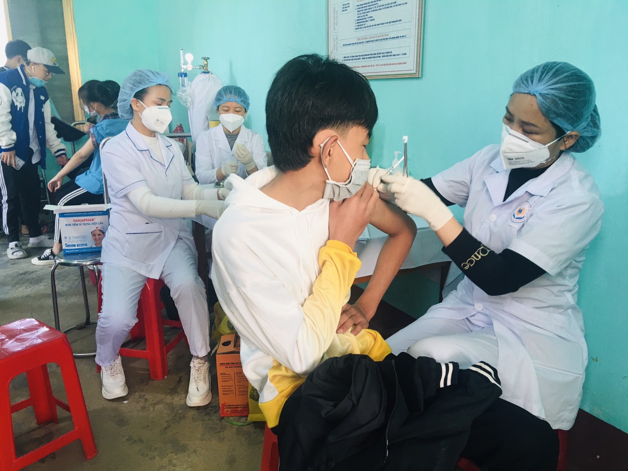 Tiêm vắc xin phòng Covid-19 cho trẻ dướt 12 tuổi tại Trạm y tế phường Hưng Thành (tp Tuyên Quang).