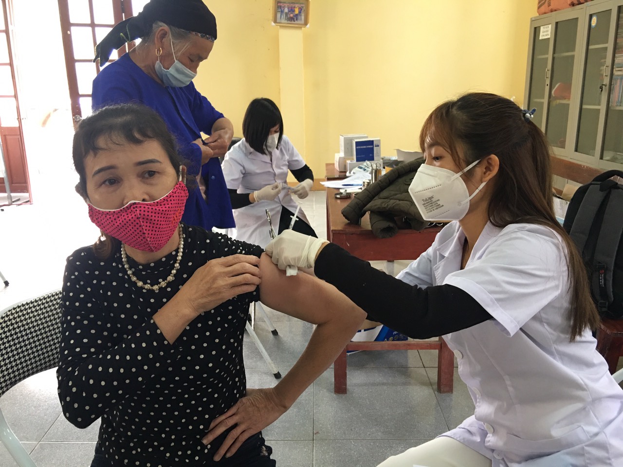 Người dân xã Tam Đa (Sơn Dương) được tiêm vắc xin phòng Covid-19. Ảnh:NT