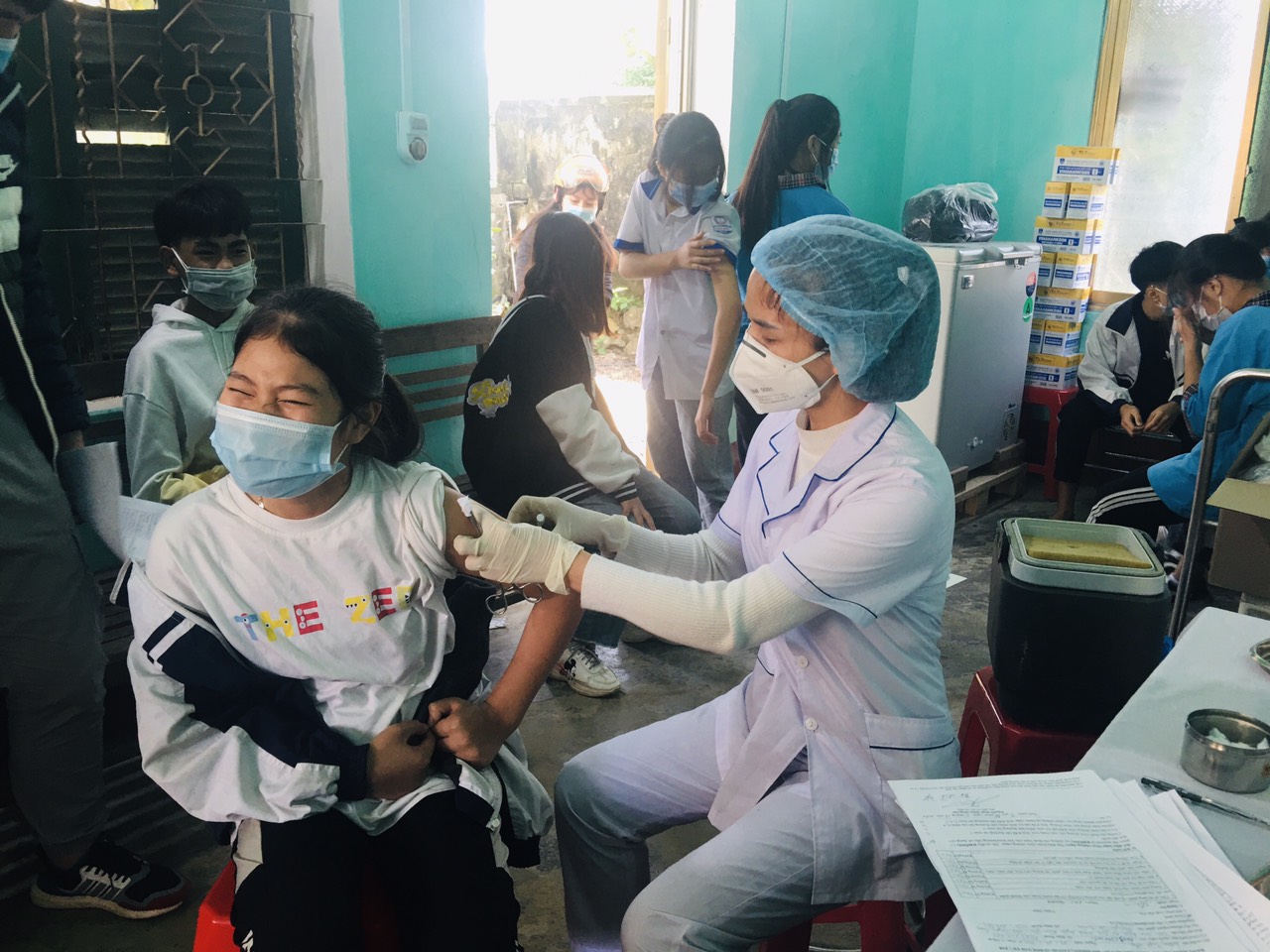 Học sinh THCS tại xã Thái Hòa (Hàm Yên) được tiêm mũi 1 phòng Covid-19.